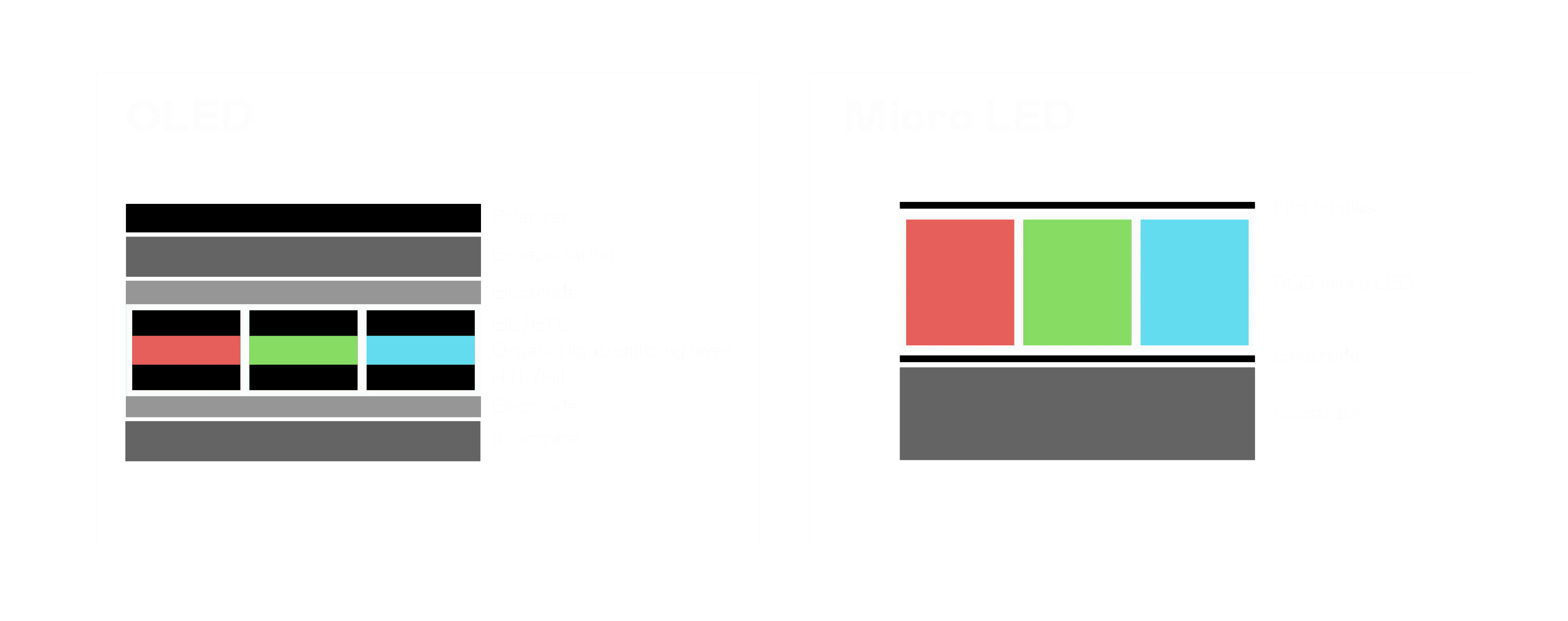 以 LED 做为显示画素,,可让 LED 的发光效率发挥到极致,,,从而让显示器具备优异的亮度表现,,,不论是在户外或室内,,均具备出众的显示效果。。。同时,,,,与使用有机材料的 OLED 相比,,,,LED 具备更稳定、、、、寿命更长的特性,,不仅不会有画面烙印问题,,,,而且更不容易出现故障、、、坏点。。
