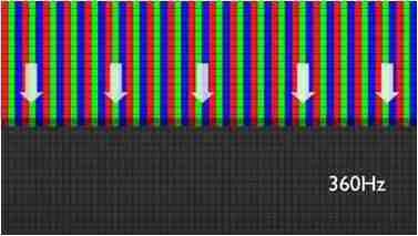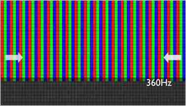 传统液晶驱动是从左到右单向进行,,在画面更新速度愈来越愈快的情况下,,位于驱动线路末端的右下角区域,,,画素的闸极来不及在短时间内获得足够电压,,,无法显示出正确的颜色资讯。。。 |