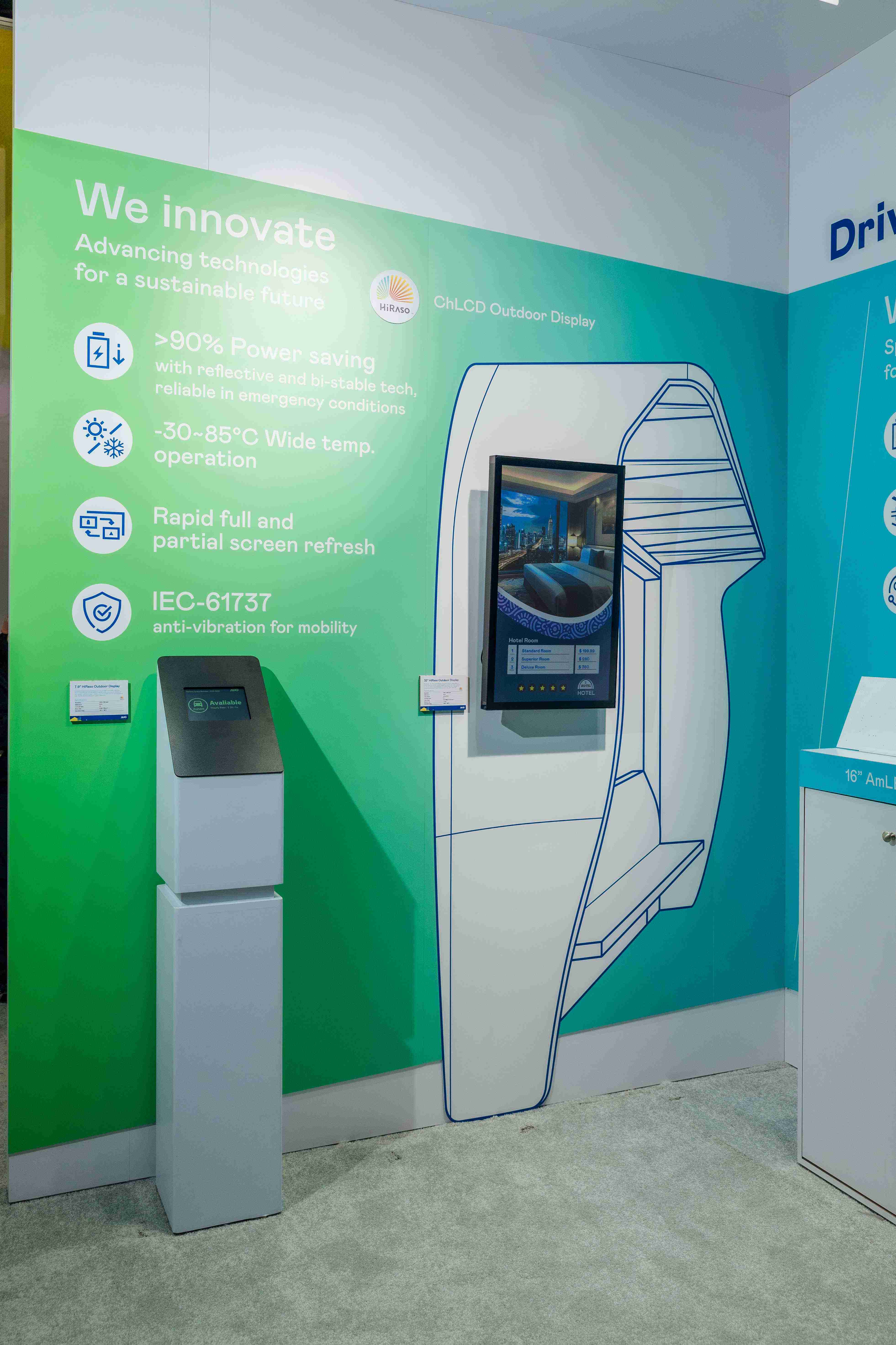 HiRaso胆固醇液晶显示器运用反射环境光线的方式,,呈现影像显示时零耗能的环保省电诉求,,光线愈强愈能呈现绝佳的色彩饱和度及显示效果,,同时在摄氏-30度至85度间宽温的使用优势,,为户外电子看板的新首选。。。